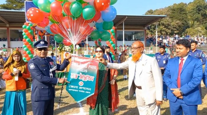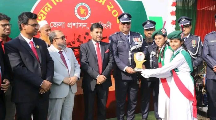 মোঃ মোবারক হোসেন নাদিম স্টাফ রিপোর্টার, ১৬ ডিসেম্বর মহান বিজয় দিবস, ২০২৫ উদযাপন উপলক্ষে নরসিংদী জেলা স্টেডিয়ামে আনুষ্ঠানিকভাবে জাতীয় পতাকা উত্তোলন, বিভিন্ন স্কুলের শিক্ষার্থীদের সমাবেশ, মনোজ্ঞ ডিসপ্লে প্রদর্শনী ও কুচকাওয়াজ