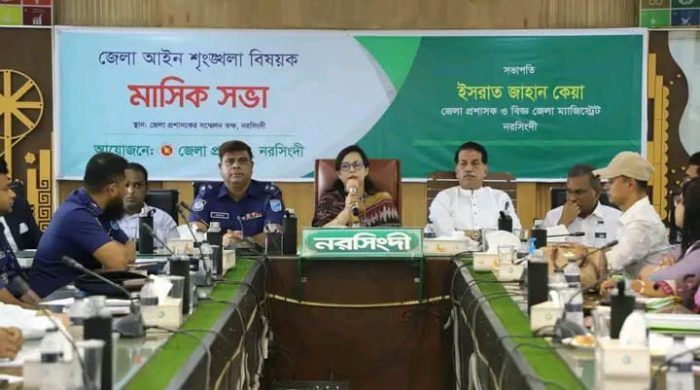 মোঃ মোবারক হোসেন নাদিম স্টাফ রিপোর্টার, আজ ১২ই এপ্রিল ২০২৬ইং রোজ রবিবার নরসিংদী জেলা প্রশাসকের সম্মেলন কক্ষে জেলা আইন-শৃঙ্খলা বিষয়ক মাসিক সভা অনুষ্ঠিত হয়েছে। সভায় সভাপতিত্ব করেন,নরসিংদী জেলা প্রশাসক ইসরাত